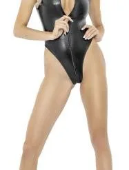 Noir Handmade Wetlook Jurkje Met Slangenprint En Rits – Zwart
