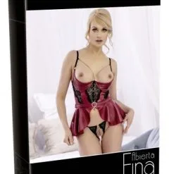 Dit verleidelijke luxe korset van Abierta Fina heeft een aangehecht speels rokje en sexy open 3/4 cups! Deze hebben een lichte vulling en een beugel voor een fijne ondersteuning. Het corset is versierd met opvallende rose goudkleurige kettinkjes en deze zie je ook terug in de bijpassende string. De kettinkjes zijn afneembaar zodat je het korset makkelijk kunt wassen. Het korset heeft een haaksluiting aan de achterzijde en verstelbare bandjes voor een mooie pasvorm. Het lijfje heeft geen baleinen. De elegante matte rode kleur, de opengewerkte kanten details en de strass gesp aan de voorzijde, maken deze set absoluut tot 1 van jullie nieuwe favourieten!