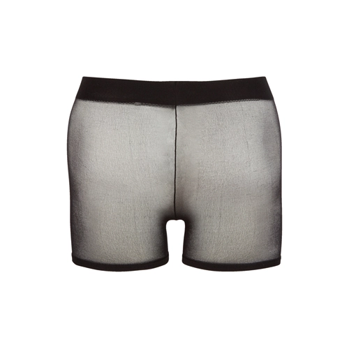 Een set van twee zwarte heren shorts. De sexy shorts zijn gemaakt van transparant visnet materiaal. Gemaakt van elastisch materiaal, en daardoor comfortabel te dragen. Geschikt voor de maten S tot en met L.