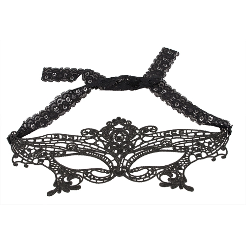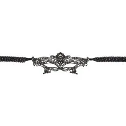 Maak je outfit compleet met dit zwarte oogmasker met borduursels voor een mysterieuze uitstraling. Het masker heeft uitsparingen voor de ogen en een dunne, kanten striksluiting aan de achterkant.