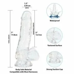 Deze transparante dildo komt uit de Addiction collectie en heeft een realistisch design met een geaderde schacht. De dildo is gemaakt van flexibel materiaal voor een comfortabel vaginaal of anaal gebruik. Dankzij de sterke zuignap plaats je de dildo eenvoudig op een gladde ondergrond voor een heerlijke handsfree stimulatie. De dildo is ook te gebruiken in combinatie met een strap-on harnas. Wij adviseren het gebruik van een glijmiddel op waterbasis.