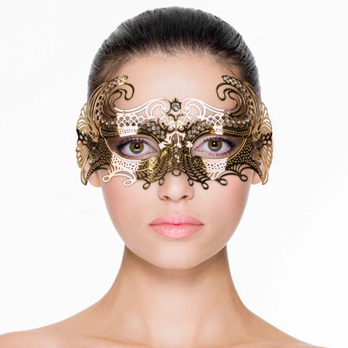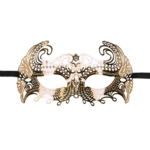 Dit mooie metalen Venetiaanse masker van Easytoys is ideaal om te combineren met een elegante jurk, maar hij staat natuurlijk ook fantastisch bij een spannend lingeriesetje. Gebruik de zwarte linten om het masker voor je ogen vast te maken. De diamantjes boven de openingen voor de ogen maken het masker extra sierlijk, terwijl de krullerige vormen van het masker het geheel een mysterieuze uitstraling geven. Hij maakt je outfit helemaal af en is dus een must voor in je accessoirecollectie.
