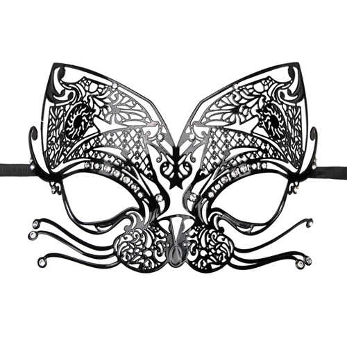 Met dit opengewerkte Venetiaanse masker van Easytoys slaagt je avondje uit gegarandeerd. Het is de ideale accessoire voor elke outfit, van een baljurk tot sexy lingerie. Het masker is vrij hoog, tot aan de haarlijn, en heeft een katachtige look. Met de twee zwarte linten kun je het masker eenvoudig aan de achterkant vastknopen. Boven de ogen en op de uiteinden van het metaal zijn diamantjes bevestigd die het masker extra sierlijk maken.