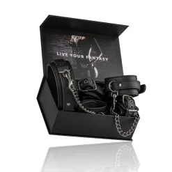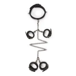 De mogelijkheden zijn eindeloos met deze geweldige bondage-set! Hij bestaat uit een halsband, handboeien en enkelboeien die gemakkelijk van elkaar gescheiden kunnen worden door middel van de clipsluitingen. De speeltjes zijn gemaakt van stevig kunstleer gevoerd met schuim, waardoor ze duurzaam zijn en comfortabel om te dragen. De halsband is verstelbaar van 35 tot 53 cm, de handboeien van 11 tot 28 cm en de enkelboeien van 13 tot 30 cm. Gebruik deze speciale set in combinatie met andere spannende speeltjes, zoals ball gags, zweepjes en tepelklemmen voor een extra opwindende ervaring.