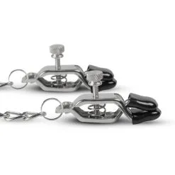 Deze stoere tepelklemmen zijn sterk, eenvoudig in gebruik en snel aan te passen aan al je wensen. De extra brede toppen verdelen de druk goed over de gehele tepel voor een ongekende sensatie. De metalen ketting maakt je avontuur compleet. Pak hem vast en trek aan de klemmen of geef de controle uit handen wanneer jouw partner de ketting vast heeft. Ben jij klaar voor meer?