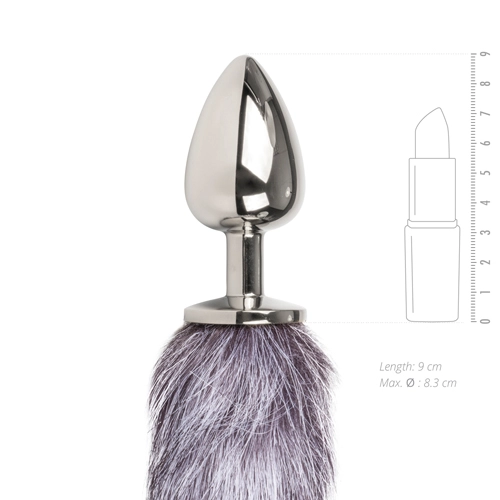 Grote zilverkleurige buttplug met grijze vossenstaart