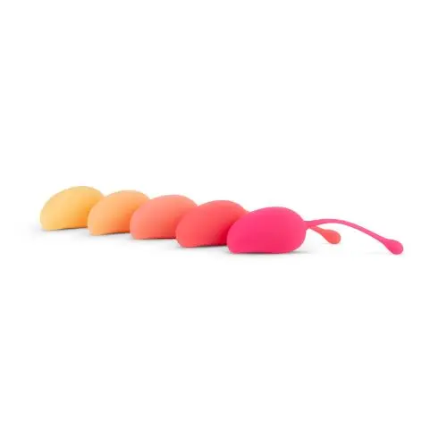 Train je bekkenbodemspieren met vaginaballetjes en geniet van een strakkere vagina, intensere orgasmes en meer stimulatie. Deze mooie set bevat 5 vaginaballetjes. Breng één van de balletjes in de vagina in en span de bekkenbodemspieren aan om het balletje op zijn plek te houden. Op deze manier worden de spieren getraind en zullen ze bij regelmatig gebruik van de balletjes steeds sterker worden. De vagina wordt strakker en je krijgt zelfs meer controle over je blaas. Dit maakt de balletjes ook zeer geschikt voor vrouwen met een te wijde vagina of incontinentieklachten. De balletjes hebben verschillende gewichten zodat je bij de lichtste bal kan beginnen en in je eigen tempo steeds een stapje verder kan gaan in je bekkenbodemtraining. Het zachte siliconen materiaal voelt heerlijk comfortabel aan en is eenvoudig en snel schoon te maken met toycleaner en water.