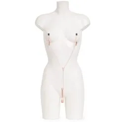 Stimuleer en sier je meest intieme zones met de All Sensation Chain. Deze bodyketting wordt gedragen op de tepels en om de clitoris. Het geheel heeft een schitterende roségouden kleur en is voorzien van verstelbare klemmen. De tepelklemmen hebben anti-slip topjes voor een goede grip en zijn voorzien van een klein schuifje. Hiermee bepaal je eenvoudig hoeveel druk er op de tepels komt te staan. De clitorisklem maakt alles gevoeliger terwijl de kralen zachtjes de vagina strelen. Ben jij klaar voor de All Sensation Chain?