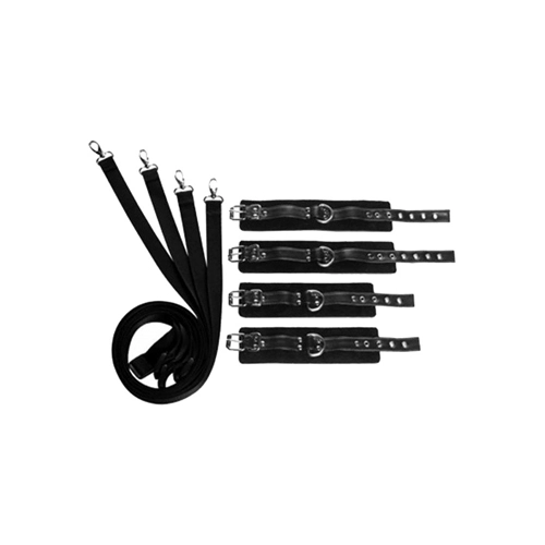 Met deze 8-delige bondage set bestaande uit 4 boeien met 4 leren koorden ben je de onbetwistbare heerser in de slaapkamer. Deze basis set is uitgevoerd in leer en kan gemakkelijk meegenomen worden in de koffer wanneer je ook in het buitenland in een hotel de baas wilt blijven. Deze set is zwart en zilver gekleurd en is uitstekend geschikt wanneer je bondage aan het verkennen bent. Hoe je de boeien en koorden wilt gebruiken is aan jou, laat je fantasie op hol slaan!