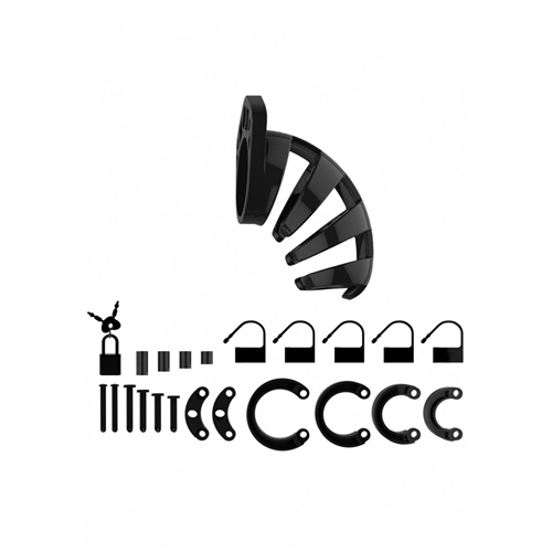 De ManCage 02 Kuisheidskooi is een complete kuisheidskooi voor een aantrekkelijke prijs. De zwarte half open kooi sluit de mannelijke geslachtsdelen op en houdt ze keurig op hun plek. De kooi is volledig aan te passen naar de wensen van hem of zijn partner/Dominant. Je ontvangt bij de ManCage 02 vier ringen met buitendiameters van: 45 mm, 5 mm, 55 mm en 6 mm. Ook kun je de afstand van de kooi verstellen met de losse onderdelen. Zo ben je altijd verzekerd van een goede pasvorm. Je ontvangt bij de peniskooi een metalen slotje met sleuteltjes en 5 kunststof slotjes voor discreet gebruik.