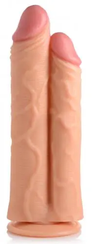 Verdubbel je genot met deze unieke dubbele dildo! De toy bestaat uit twee dildo’s die aan elkaar bevestigd zijn voor een extra gevuld gevoel. De dildo’s hebben een realistisch design en een geaderde schacht voor een levensechte sensatie. Dankzij de sterke zuignap is deze toy op elk glad en plat oppervlak te plaatsen en kun je ook heerlijk handsfree genieten.