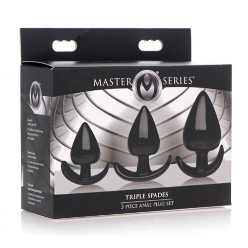 Triple Spades is een driedelige buttplug set met buttplugs in verschillende groottes. Ze hebben allemaal een ergonomische basis die perfect tussen je billen vallen. Door de taps toelopende punt zijn de buttplugs stuk voor stuk gemakkelijk in te brengen. Na gebruik kun je ze reinigen met lauwwarm water en toycleaner.