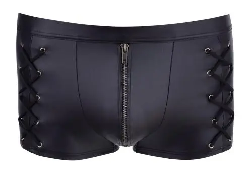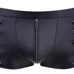 Trendy matzwarte boxershort met decoratieve details die hem uniek en anders maken. De voorkant heeft een rits die snel geopend kan worden voor praktische en erotische doeleinden. De stof heeft een fantastische elasticiteit die uitstekend comfort geeft.