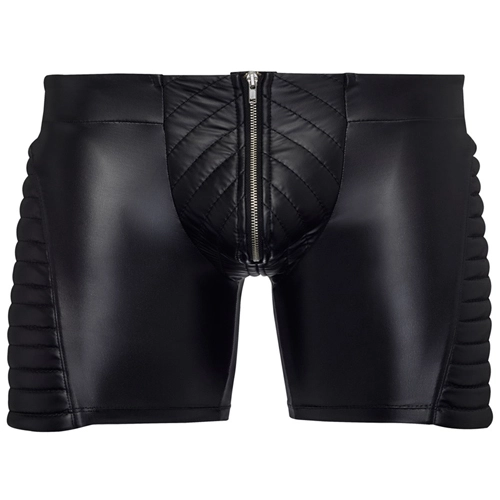 Jij kunt elke uitdaging aan wanneer je deze stoere boxer draagt. De zwarte boxer is volledig gemaakt van mat glanzend materiaal dat een erg stoere en erotische uitstraling geeft. Het kruis en zijkanten zijn voorzien van ruitvormige stiksels voor een luxueuze uitstraling. De rits is voorzien van een zachte padding voor optimaal comfort.