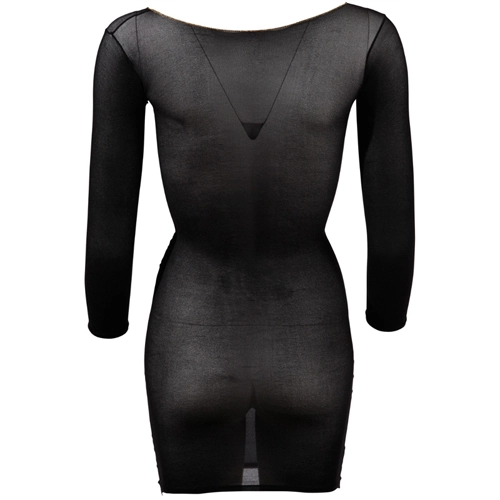 Je voelt je supervrouwelijk in deze mini jurk met lange mouwen. Het jurkje is licht transparant en heeft een mooi decolleté waardoor je lichaam er mooi uit komt. Maar omdat je wel bedekt bent, laat je toch nog iets te raden over. De zwarte kleur en de sierlijke mouwen geven je een elegante uitstraling. Door het korte model dat net over je billen komt, komen je benen prachtig uit. Je bent op en top vrouw!