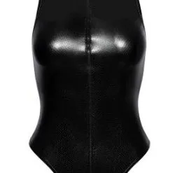 Wetlook Body Met Slangenprint En Rits – Zwart