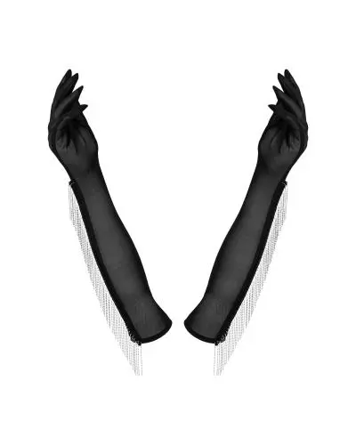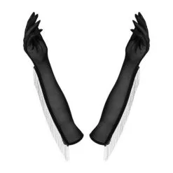 Deze verleidelijke lange handschoenen zijn afgewerkt met een transparante mesh en intrigerende kralen en zitten perfect tegen de huid. Makkelijk te combineren en maakt elke outfit compleet.