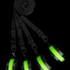 “Glow in the Dark” is een lijn van bondage producten die oplichten in het donker. Met fluorescerende groene details zijn ze ideaal voor feesten en transformeren ze elk bed tot een leuk plekje. De bedboeien passen onder het matras en laten toe om fetisj fantasieën te verkennen. Om het oplichten te activeren, moeten ze vooraf aan zonlicht worden blootgesteld.