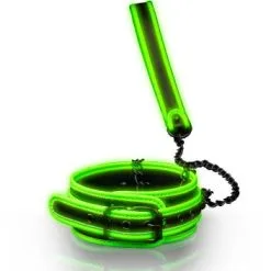 Ontdek de toekomst van bondage met Glow in the Dark, een verstelbare halsband met fluorescerende groene details die oplichten in het donker. Begeleid door een riem is deze set perfect om een vleugje spanning toe te voegen aan elke intieme gelegenheid. Vergeet niet om glow-in-the-dark producten voor gebruik in het donker te activeren met zonlicht.