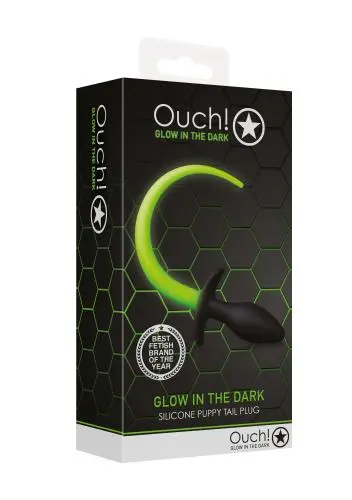 Spannende Glow in the Dark Puppy Tail buttplug. De buttplug laat jou genieten van ongekende sensatie. De buttplug is gemaakt van siliconen en is met glijmiddel eenvoudig in te brengen. De plug heeft een puntige top waardoor het penetreren makkelijker gaat. Aan het uiteinde zit een glow in the dark hondenstaart waardoor hij ideaal is voor een rollenspel. Het materiaal gloeit in het donker en moet worden geactiveerd door zonlicht voordat er in het donker van kan worden genoten. Kwispel je al van genot?