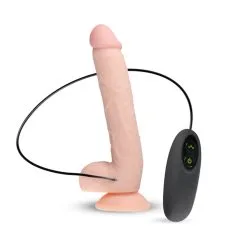 De Elvin XL vibrator is speciaal voor de mensen die houden van lekker groot, realistisch en vibraties. Deze vibrator ziet en voelt levensecht. De aders lopen over de schacht en hij heeft een realistische eikel en balzak. En voor de mensen die graag “handsfree” spelen zit er een sterke zuignap aan. Ook geeft deze vibrator heerlijke vibraties. Hij heeft 10 standen onderverdeeld in 3 snelheden en 7 patronen. Die zijn gemakkelijk te bedienen met de knoppen op de afstandsbediening die na gebruik makkelijk op te laden is met de bijgeleverde USB-kabel.