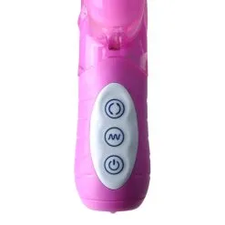 Het plezier dat deze vibrator jou geeft zul je nooit ergens anders ervaren! Je wordt niet op één plekje gestimuleerd, maar op maar liefst 3 verschillende plekjes. Terwijl de schacht jou diep van binnen penetreert met zijn roterende parels, doen het clit konijntje en de anale kralen het andere werk met hun krachtige vibraties. Je kunt de schacht in één richting laten roteren, terwijl de externe stimulators voorzien zijn van een krachtige bullet met 7 verschillende vibratie patronen. De vibrator is volledig waterdicht, dus ook een ideaal speeltje voor waterpret onder de douche!