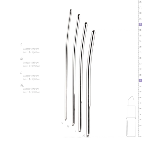 Ken jij je eigen grenzen? Ontdek en verleg ze met deze dilator set van Sinner Gear. De set bestaat uit 4 verschillende dilators in oplopende groottes: 4, 5, 6 en 7 mm. De toys zijn volledig gemaakt van roestvrij staal, waardoor ze sterk en glad aanvoelen. Het platte handvat zorgt voor een goede grip in elke situatie. Breng de dilator in met wat glijmiddel en ga voor de gevoeligste plekjes.