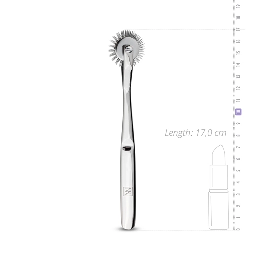 De pinwheel van het Sinner Gear is onmisbaar in het nachtkastje van de liefhebbers van ruig. De pinwheel geeft een prikkelende sensatie wanneer deze met zijn scherpe puntjes en wielen over de huid (van je partner) rolt. De toy is voorzien van 3 wielen met aan ieder wiel scherpe puntjes die de huid stimuleren. Voer druk uit, ontdek intieme zones en kijk waar jouw (partners) grenzen liggen.
