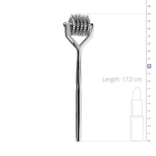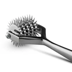 De pinwheel van het Sinner Gear is onmisbaar in het nachtkastje van de liefhebbers van ruig. De pinwheel geeft een prikkelende sensatie wanneer deze met zijn scherpe puntjes en wielen over de huid (van je partner) rolt. De toy is voorzien van 5 wielen met aan ieder wiel scherpe puntjes die de huid stimuleren. Voer druk uit, ontdek intieme zones en kijk waar jou (partners) grenzen liggen.