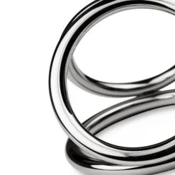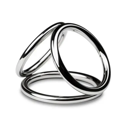De Triad Chamber Cock en Balring is een luxe cockring uit de Sinner Gear Unbendable serie van EasyToys. Deze toy is volledig gemaakt van nikkelvrij metaal en voelt daardoor zwaarder en gladder aan dan elk ander seksspeeltje. Deze cockring heeft 3 ringen waar je de ballen en de (half stijve) penis in plaatst. Dit zorgt voor een langdurige erectie en een nog intenser gevoel. De cockring is te gebruiken met alle soorten glijmiddel en snel en grondig te reinigen. Afmetingen binnen diameter: Grote ring is 5,5 cm, deze is bedoeld voor om de ballen en penis. Medium ring is 5 cm en is bedoeld voor om de ballen. De kleinste ring is 4.5 cm en gaat om de penis.