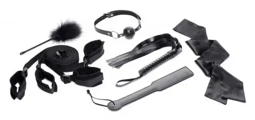 Zijn jullie nieuwsgierig naar bondage en willen jullie beginnen met een kinky bdsm avontuur? In deze luxe 6-delige set vinden jullie alles voor onvergetelijke avonden in de slaapkamer! De set is inclusief bedboeien die onder bijna ieder matras bevestigd kunnen worden. Blinddoek elkaar met de zachte blinddoek en experimenteer met de flogger of de paddle. De set is gemaakt van vegan leder en is voorzien van nikkelvrije details.