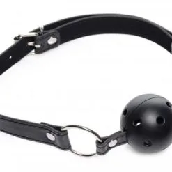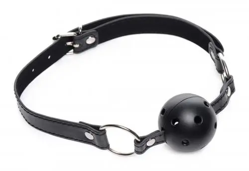 -de ballgag heeft een lengte van 63.5 cm en is verstelbaar tussen de 39 en 58 cm. De bal heeft luchtgaten en heeft een diameter van 4.5 cm.