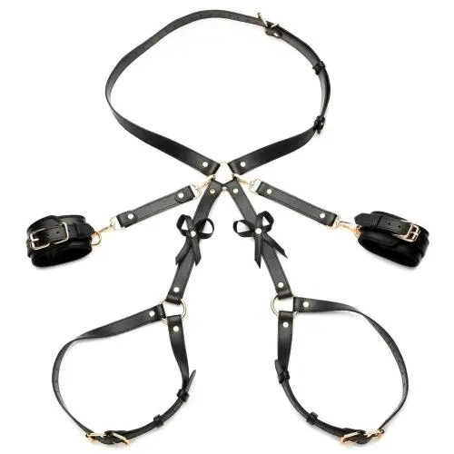 Als je op zoek bent naar een speeltje voor je onderdanige spelletjes, dan is het Bondage Harnas met Strikken een uitstekende optie. Dit mooie harnas is ontworpen om je taille, dijen en polsen vast te houden met riemen en boeien, en heeft strikken die de achterkant van je dijen accentueren en je rondingen benadrukken.