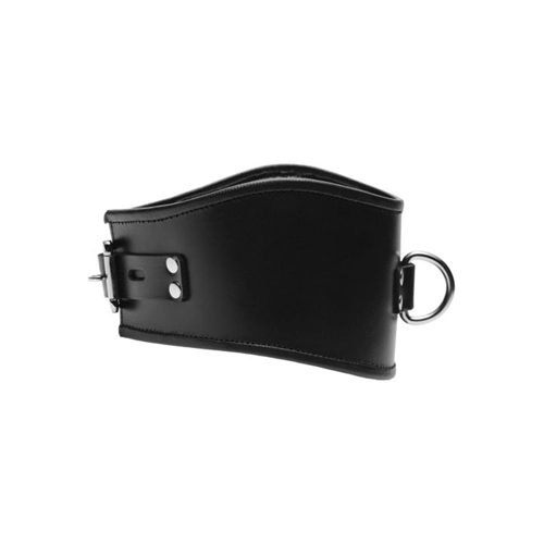 Deze kraag is voorzien van een dikke leren bekleding die comfortabel en veilig aanvoelt rond de hals zonder te knellen. Hij wordt vastgezet met een gesp die ook van een slot voorzien kan worden. Aan de voorkant bevindt zich een halve ring waaraan je een leiband kunt vasthechten zodat je de sub aan de band kunt houden in de kamer, in de gang of zelf voor een wandeling buiten. Deze kraag past bij een nekomtrek van 30,5 cm tot 45,7 cm