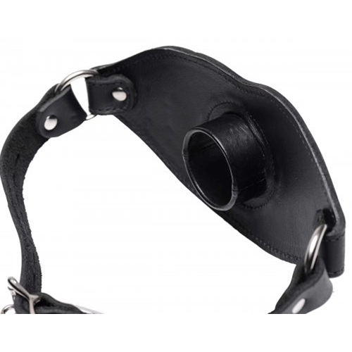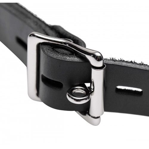 Spreid de lippen van je sub, en open zijn of haar mond in afwachting van jouw genot! Deze mondknevel heeft een opening van 3,8 cm diameter aan de voorzijde. De volmaakte maat om allerlei voorwerpen te kunnen aanvaarden.. Een gesp aan de achterzijde houdt het strenge leer perfect op zijn plaats. En wist je dat je ook eenvoudig een klein standaardslot kunt toevoegen? De knevel steekt iets in de mond, maar laat de tanden en de tong vrij, waardoor je sub in oraal opzicht volledig onder jouw controle is! De knevel is gemaakt van stevig staal en echt leder. Een stukje kwaliteit, gemaakt om te beantwoorden aan al jouw fantasieën!