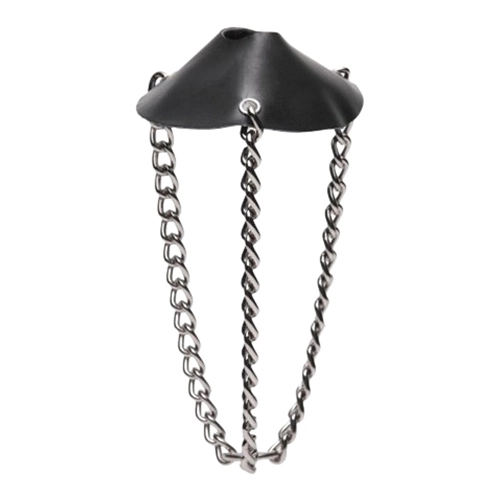 Deze parachute van Strict Leather, gemaakt van kwaliteitsleer, wordt rond de basis van je ballen gewikkeld en vastgezet met behulp van twee clips. Eens aangebracht vormen drie kettingen die aan de onderzijde van de parachute hangen een verbinding met een metalen ring waaraan gewichten gehangen kunnen worden. Zo worden de ballen uitgerekt door het gewicht. Het gewicht wordt gelijkmatig verdeeld zodat er niet te veel gewicht aan één zijde terecht komt.
