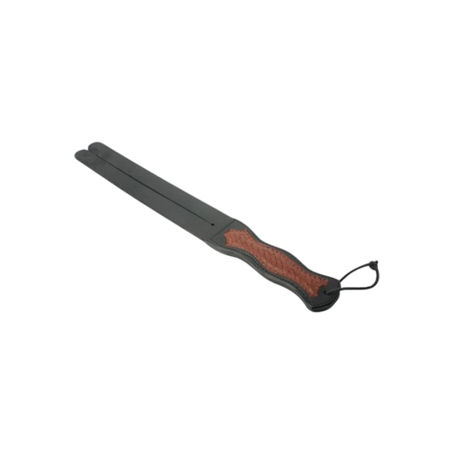 Breng je opstandige slaafje of leerling discipline bij met onze Schotse zweep. De zweep is handgemaakt en bestaat uit twee zwart lederen stukken naast elkaar. De tekening in zwart en bruin op de handgreep van 16,5 cm maken haar niet alleen leuk om te gebruiken maar ook prachtig om te zien. De totale lengte is 44,5 cm bij een breedte van 5,1 cm.