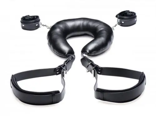 Geniet van een opwindend bondagespel met deze luxe positieriem set! Deze set heeft een comfortabele neksteun, handboeien en dijbeen riemen om de knieën omhoog te houden. De set is volledig verstelbaar en gemaakt van stevig vegan materiaal. Maak het extra spannend en bevestig een slotje aan iedere gesp (slotjes niet inbegrepen).
