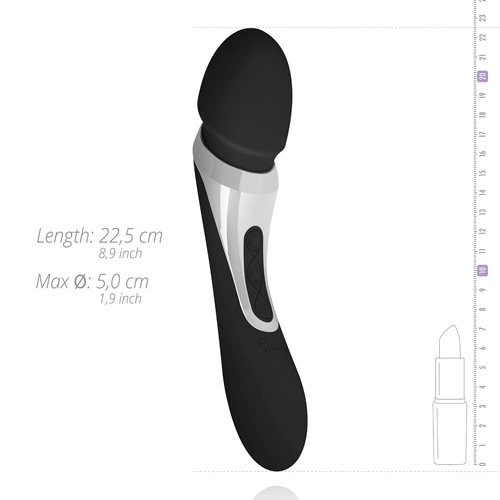 Deze prachtige wand vibrator geeft je de stimulatie waar je altijd van gedroomd hebt. Je wilt nooit meer zonder! De vibrator heeft een strak design en een luxe uitstraling. In beide uiteinden zit een motor die apart van elkaar bedient kunnen worden met de twee knoppen in het midden van de vibrator. De motoren hebben beide 7 verschillende vibratiepatronen, zodat je dit bijzonder speeltje helemaal naar je eigen voorkeur kunt instellen. Ook is de vibrator waterproof, dus neem hem gerust mee onder de douche. Als de batterij leeg is kun je hem snel en eenvoudig weer opladen met de bijgeleverde USB-kabel. Ervaar zelf hoe het fluweelzachte materiaal en de intense trillingen je gevoelige plekjes masseren en je tot een ongekend hoogtepunt brengen.