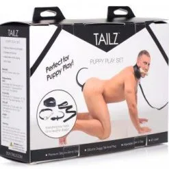 Ben jij een liefhebben van BDSM en Doggy Play, dan is deze 4-delige set onmisbaar. De set bestaat uit een losse halsband en riem, een anaalplug in de vorm van een staart en een doggy bone gag. De onderdelen zijn gemaakt van een hoogwaardige kwaliteit zoals leer, PU en zachte siliconen en veilig om te dragen.