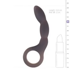 Met deze gebogen anaal dildo met stimulerende structuur is een intens anaal gevoel gegarandeerd! Door het flexibele materiaal beweegt de dildo alle kanten op en doet het wat jij wilt! De ring zorgt niet alleen voor veiligheid, maar ook voor het hartstochtelijk kunnen bewegen van de dildo. De drie versmallingen zorgen voor een optimaal gevoel. De anaal dildo met ring laat je dus onbezorgd genieten!