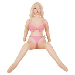 Big Boob Bridget staat altijd voor jou en je stoutste fantasieën klaar. De opblaaspop heeft extra grote borsten, blonde lokken en wijd openstaande lippen die klaar zijn voor actie. Haar benen zijn gebogen waardoor ze keurig blijft zitten. Bridget draagt een sexy roze bikini die je eenvoudig uit kunt doen wanneer je verlangt naar meer. De lovedoll heeft 3 liefdestunnels (mond, vagina, anus) is helemaal opgeblazen 1,20m lang. Hoe mag Bridget jou verwennen?