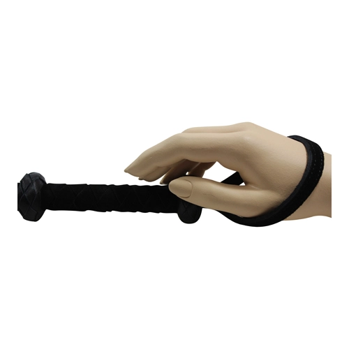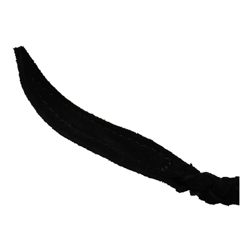 Zwarte gevlochten zweep gemaakt van hoogwaardige suède leer met verstevigde handgreep en ophangriem.
